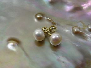 zlaté náušnice s mořským perlami 6,5-7 mm na patent – Skladem7 990 Kč